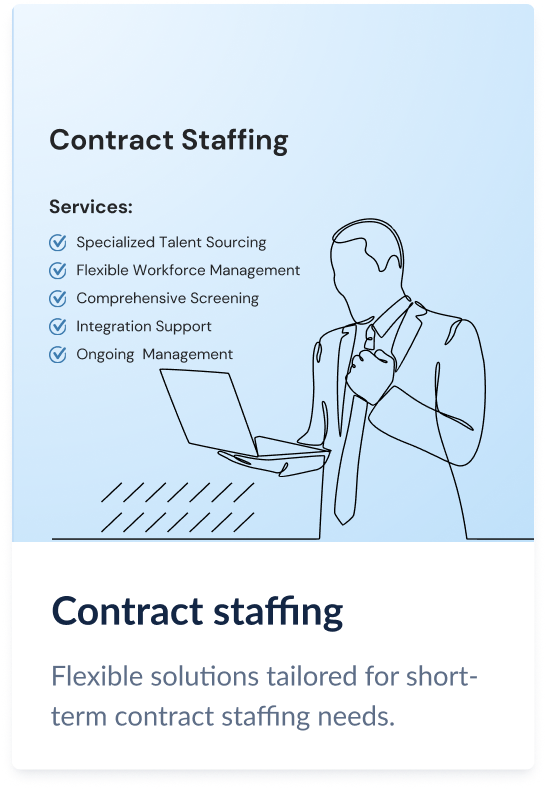 MCIIS Tech provides HR support and talent management services tailored to your requirements. Our extensive database of qualified candidates ensures we match the right talent to your needs, maintaining a high-quality employee pool across various skillsets.