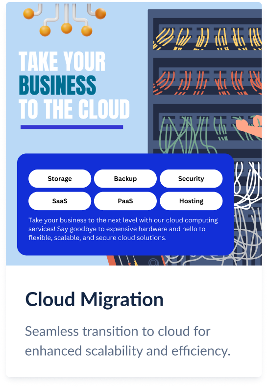 At MCIIS Tech, our Cloud Solutions are designed to help your business leverage the power of the cloud to drive innovation, enhance efficiency, and reduce costs. Whether you are looking to migrate your existing infrastructure, develop cloud-native applications, or optimize your current cloud environment, our expert team provides comprehensive services tailored to your unique needs. Partner with MCIIS Tech to unlock the full potential of the cloud and achieve scalable, secure, and sustainable growth.
